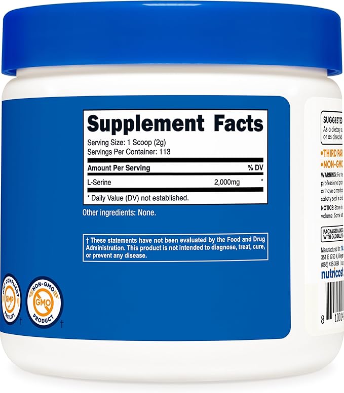 Nutricost L-Serine Powder, 113 Servings (.5LB) - 2,000 MG Per Serving - Non-GMO, Gluten Free