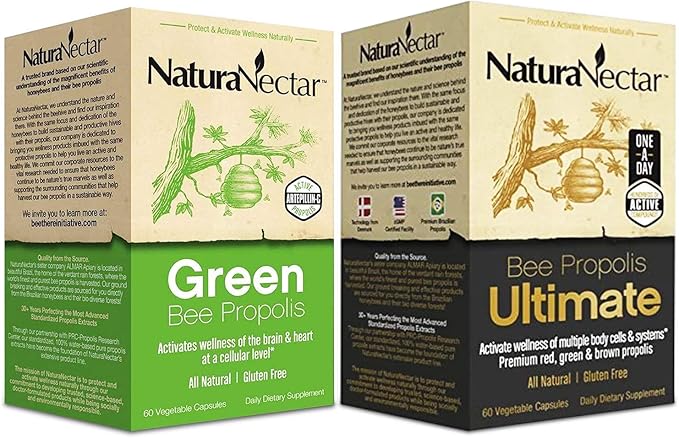 NaturaNectar Natural Bee Propolis Bundle - Green Bee Propolis and Bee Propolis Ultimate - for Immune Support, Memory and Focus - 60 Capsules per Bottle