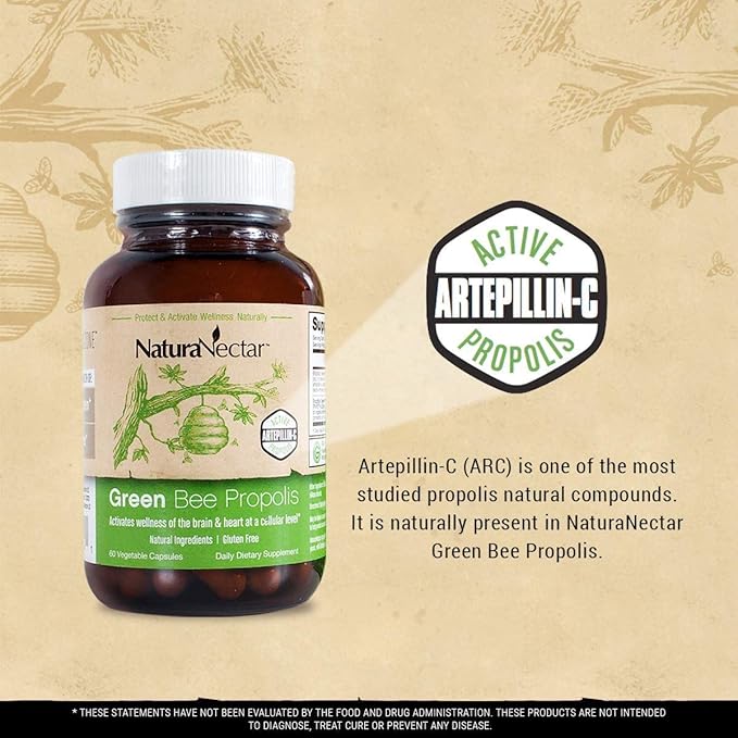 - Green Bee Propolis: This natural nootropic and source of active compound Artepillin-C (ARC), supports brain and heart wellness at the cellular level*. It supports the health of the immune, circulatory, and nervous systems*. Green Propolis has also shown support for brain function, and the health of prostate, breast, and larynges cells*.