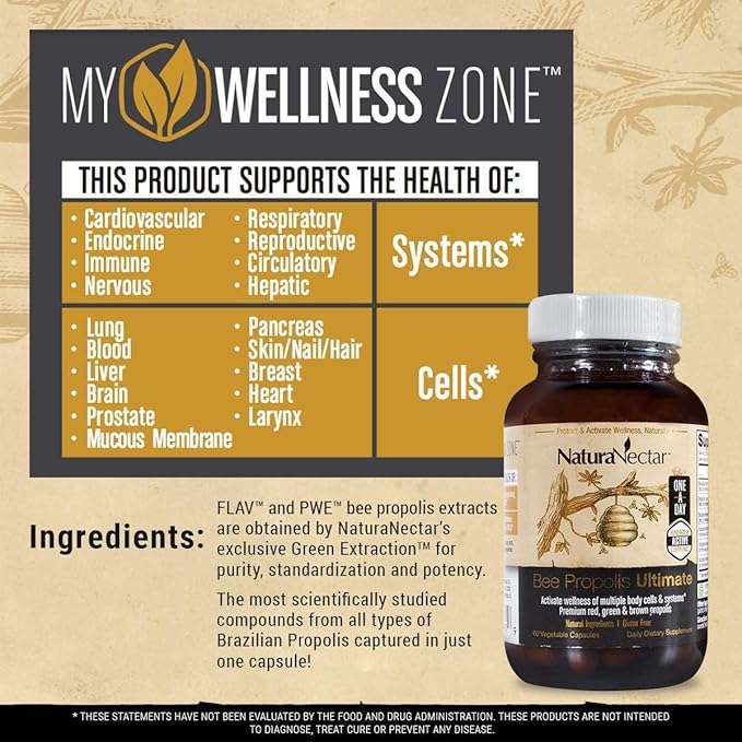 - Bee Propolis Ultimate and Brown Bee Propolis Bundle: This natural bundle includes a powerful dynamic duo! Bee Propolis Ultimate promotes active wellness of multiple body cells and systems* with an exclusive formula of 33% of premium Brazilian Red, 33% Green, and 33% Brown propolis. The best gift from the honeybees to your health! Our 100% premium Brazilian Brown Bee Propolis supports the immune system*, lung, and mucous membrane cell health* and promotes a healthy inflammation response*