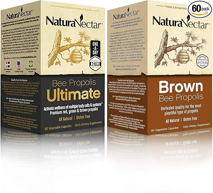 NaturaNectar Natural Bee Propolis Bundle – Bee Propolis Ultimate and Brown Bee Propolis - for Immune, Cardiovascular, and Respiratory Systems Support - 60 Capsules per Bottle