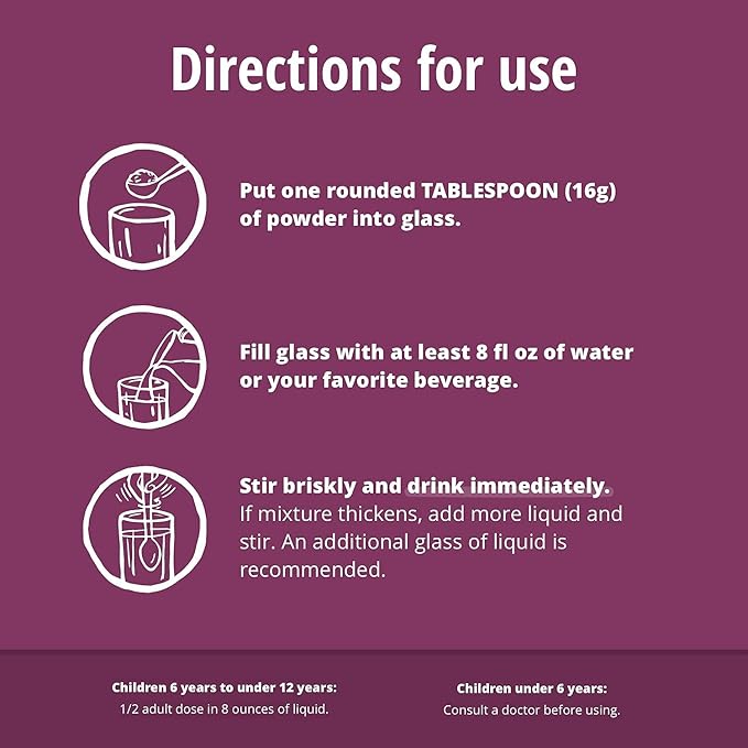 Sugar-Free Psyllium Husk Fiber Powder, Berry Flavored 19 oz