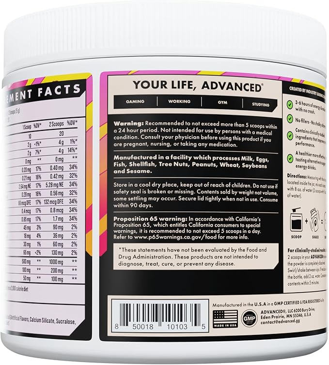 Advanced Energy - Energy Boosting Formula with Electrolytes for Hydration - L-Theanine to Combat Jitters - Sugar Free & Keto Friendly with No Artificial Colors - (40 Servings) (Dream Team Punch)