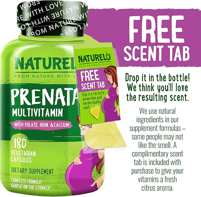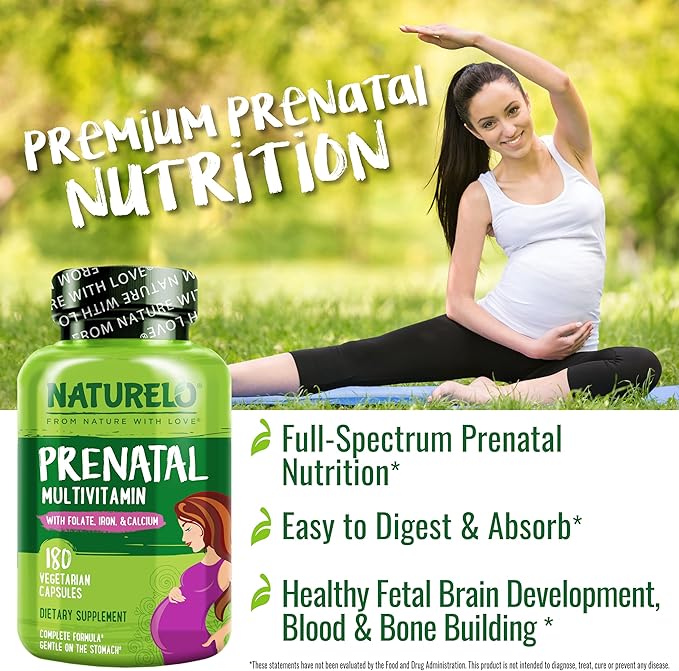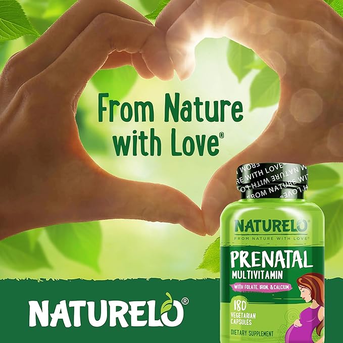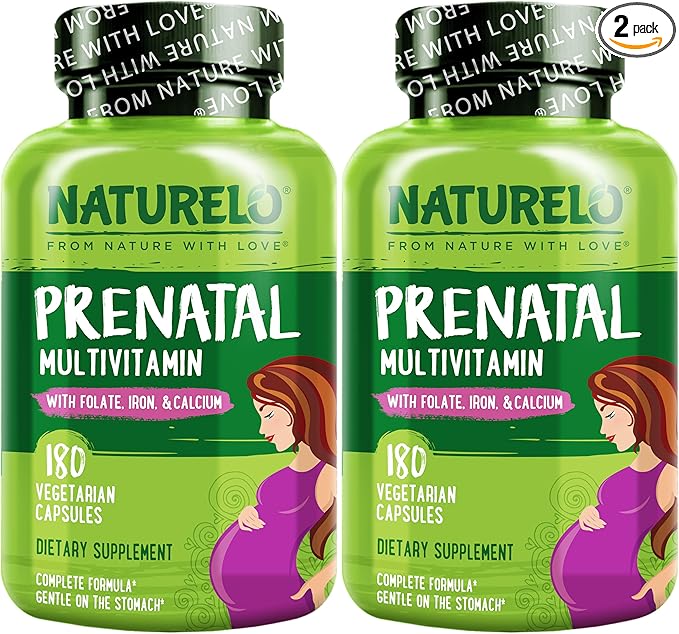 NATURELO Prenatal Multivitamin with Gentle Chelated Iron, Methyl Folate, Plant Calcium & Choline - Vegan, Vegetarian - Non-GMO - Gluten Free - 180 Capsules - 4 Month Supply (Pack of 2)