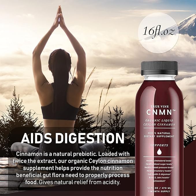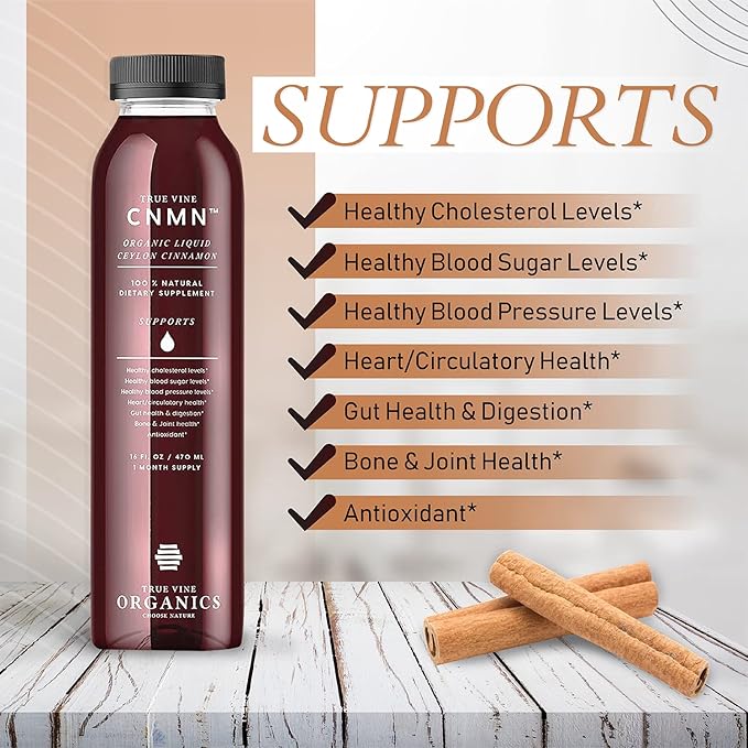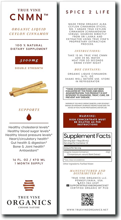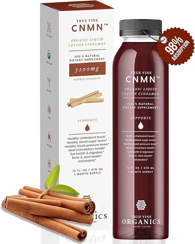 True Vine 3200mg Liquid Ceylon Cinnamon Supplement (Made in USA) for Healthy Heart, Blood Pressure, Sugar, Cholesterol, Gut & Joints — 100% Organic Ceylon Cinnamon to Fight Free Radicals (16 fl oz)