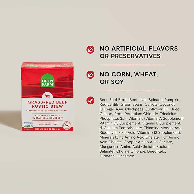 Open Farm Rustic Stews Wet Dog Food, Grain-Free, Complete & Balanced with Human-Grade Ingredients, Humanely-Raised Meat & Bone Broth, Grass-Fed Beef Recipe, 12.5oz Packs (Case of 12)