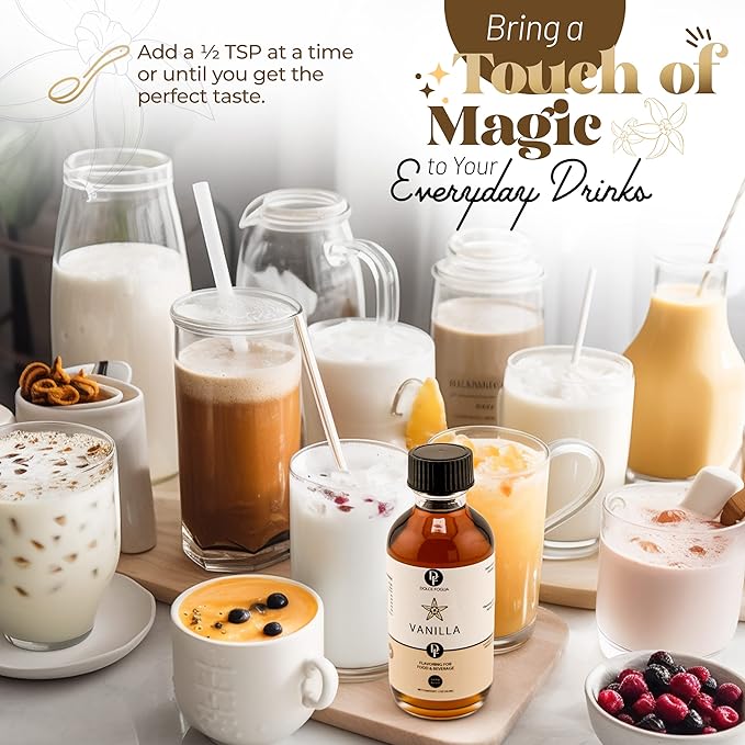 - Premium Vanilla Flavoring for Beverages: Indulge in the timeless taste of vanilla with our American-crafted, alcohol-free vanilla syrup. A perfect addition to beverages, it brings a rich, vanilla-infused twist to your drinks, all without added sugars.