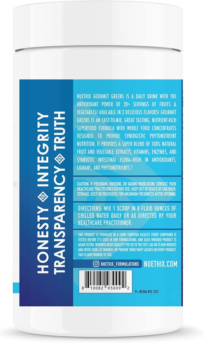 NuEthix Formulations Gourmet Greens Drink Powder Dietary Supplement with Fruit and Vegetable Superfoods and Probiotics, Berry, 30 Servings