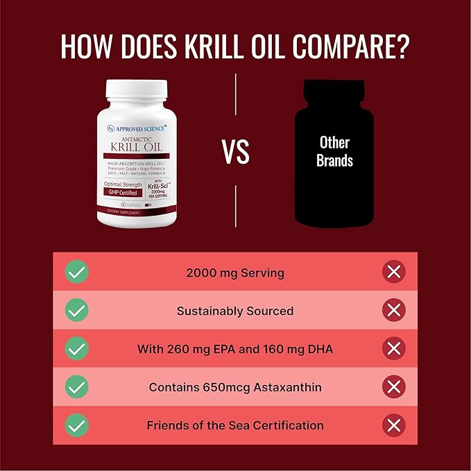 Approved Science Krill Oil - 2000mg Antarctic Krill Oil, 650mcg Astaxanthin - 260mg EPA, 160mg DHA - 60 Softgels - 1 Month Supply