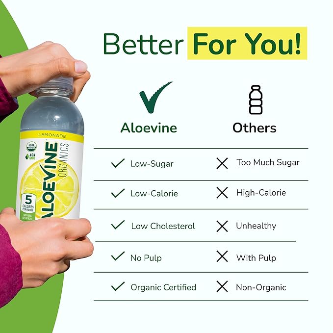 - Add Flavor To Your Hydration - Experience the perfect balance of taste and health with Aloevine’s Organic Aloe Vera Drink. This refreshing aloe vera juice drink not only satisfies your taste buds but also gives your body the essential guilt-free hydration it needs.