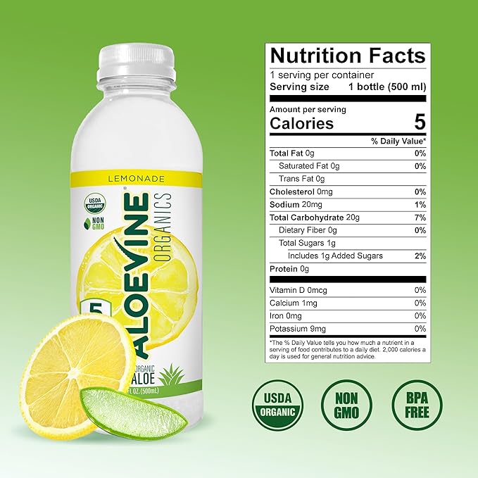 - 5 Calories, 0 Guilt - These health drinks are the only organic-certified, pulp-free aloe drinks on the market. With just 5 calories and less than 1g of sugar per bottle, it’s the ideal choice for health-conscious individuals who crave delicious flavor without added sugars or artificial ingredients.