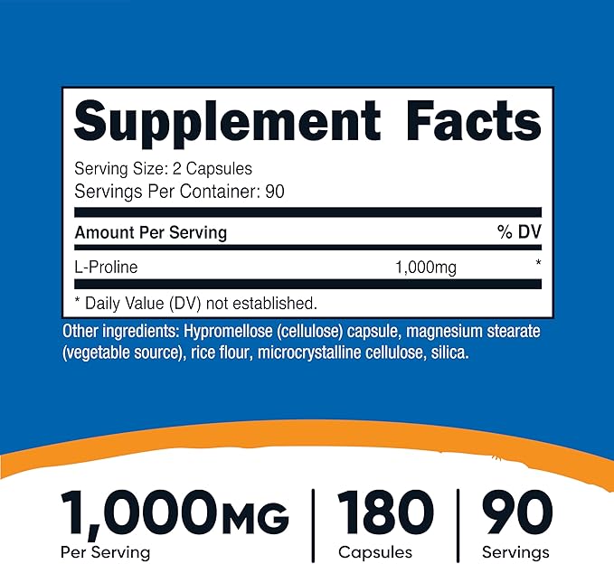 - 1,000mg of L-Proline Per Serving (90 Servings)