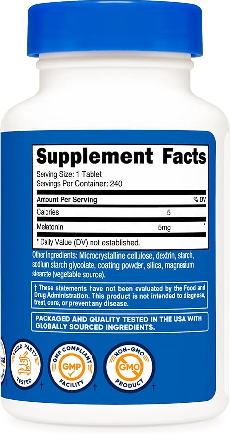 Nutricost Melatonin 5mg, 240 Tablets - 5mg Per Serving, Non-GMO, Gluten Free