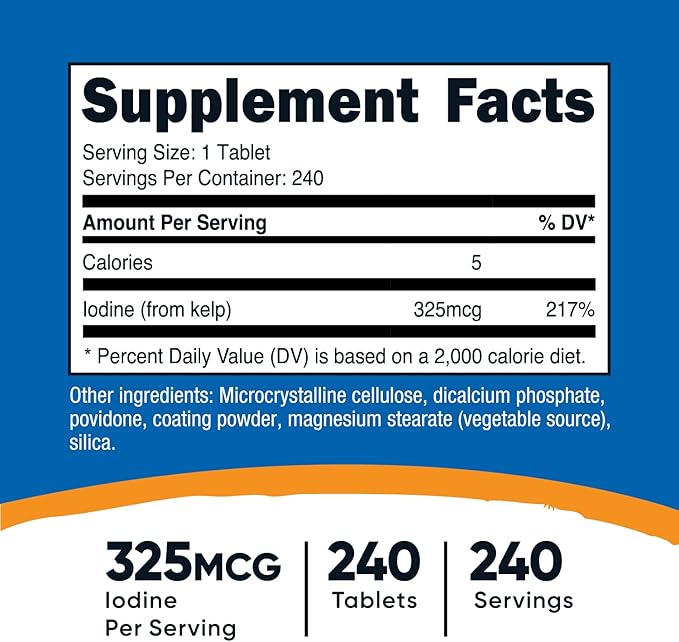 - 325mcg Of Iodine (From Sea Kelp) In Each Tablet