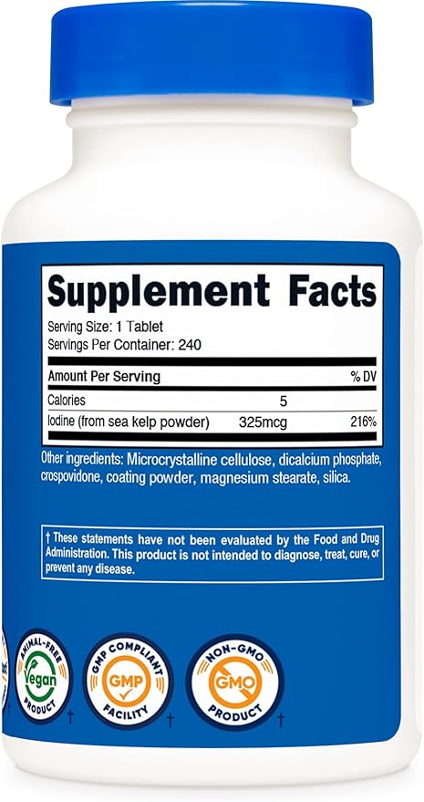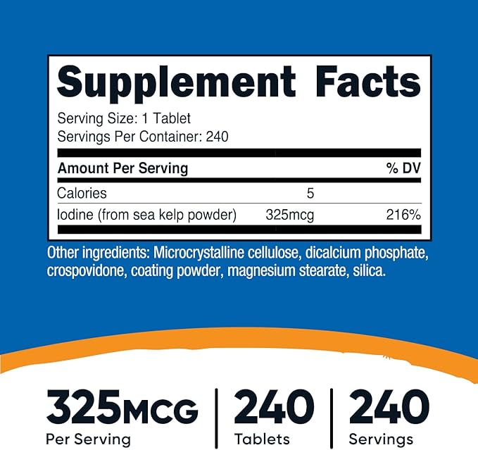 Nutricost Iodine (Natural Iodine from Sea Kelp) 325mcg, 240 Tablets - Non-GMO, Gluten Free