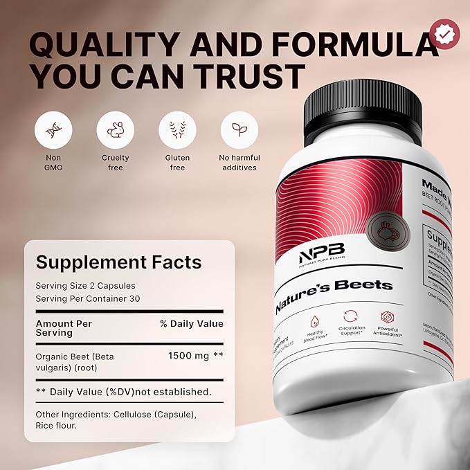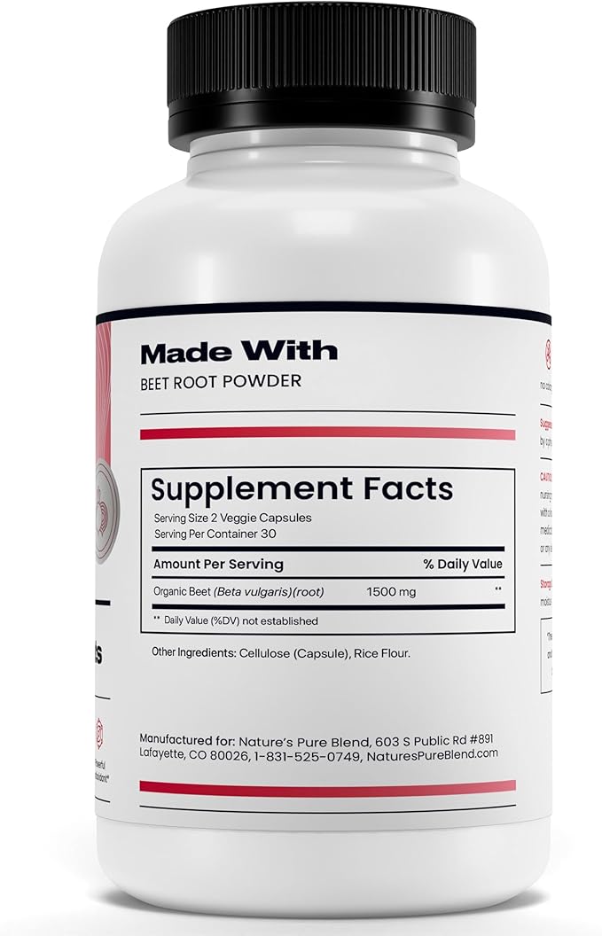 Nature's Pure Blend Organic Beet Root Powder Capsules – Beet Root Capsules & Beets Supplements for Circulation – L Arginine – Nitric Oxide Supplements – 1500MG