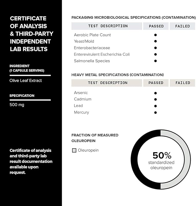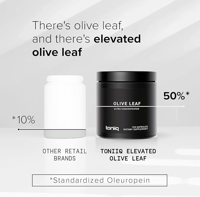 - The Highly Concentrated Form of Olive Leaf: Toniiq Olive Leaf capsules contain 500mg of some of the highest quality olive leaf extract in each pill– ethically sourced from family-owned farms, grown and cultivated using an extraction process to ensure at least 50% oleuropein in every serving.