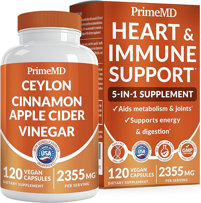 5-in-1 Ceylon Cinnamon Capsules 2355mg - Ceylon Cinnamon and Apple Cider Vinegar with Turmeric, Panax Ginseng, Cinnamon, and Bioperine, 120 ct