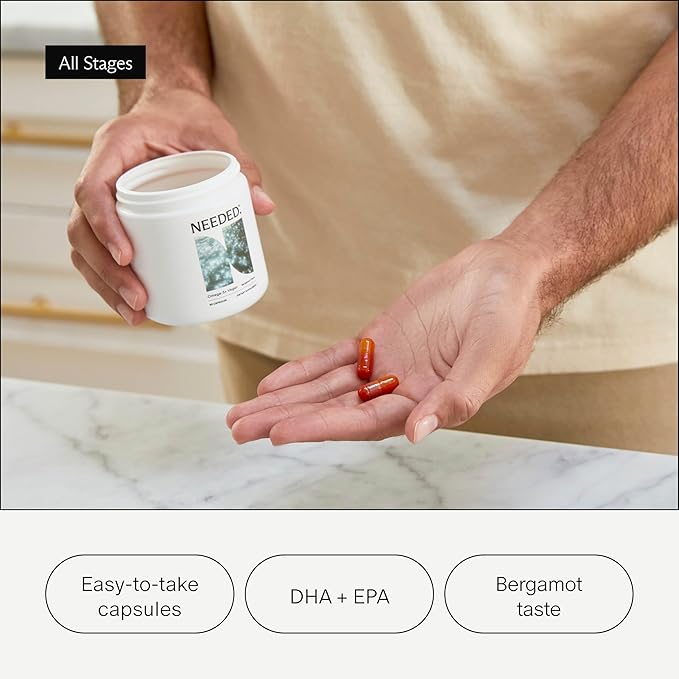 Needed. Prenatal Omega-3 - High Potency Dose of Sustainably Sourced Fish Oil, Bergamot Flavor, 1000mg DHA, 1000mg EPA, Encased in a Gelatin-Free, Plant-Based Softgel Shell, 30-Day Supply