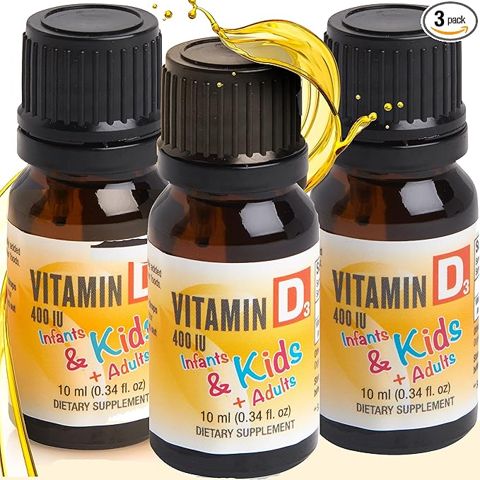 Organic Baby & Infant Vitamin d Drops - Vegetarian 400 IU Liquid Vitamin d3 for Babies & Newborn | No Sugar or Flavors | Non-GMO | Gluten Free & Tummy Gentle | Ages 4 & Under - Pack of 3