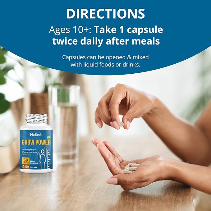 - Bone Strength Formula: Grow Powerbone strengthand bone health supplement from NuBest provides Calcium, Vitamin D3, Phosphorus, minerals, vitamins, and essential nutrients that support bone strength and bone strength for children and teenagers. Continuous use of at least 6 months along with healthy nutrition, regular exercise, and proper sleep is recommended to get the desired result.