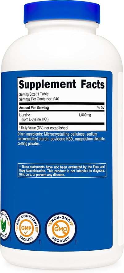 Nutricost L-Lysine 1000mg, 240 Tablets - Gluten Free, Non-GMO, and Vegetarian Friendly