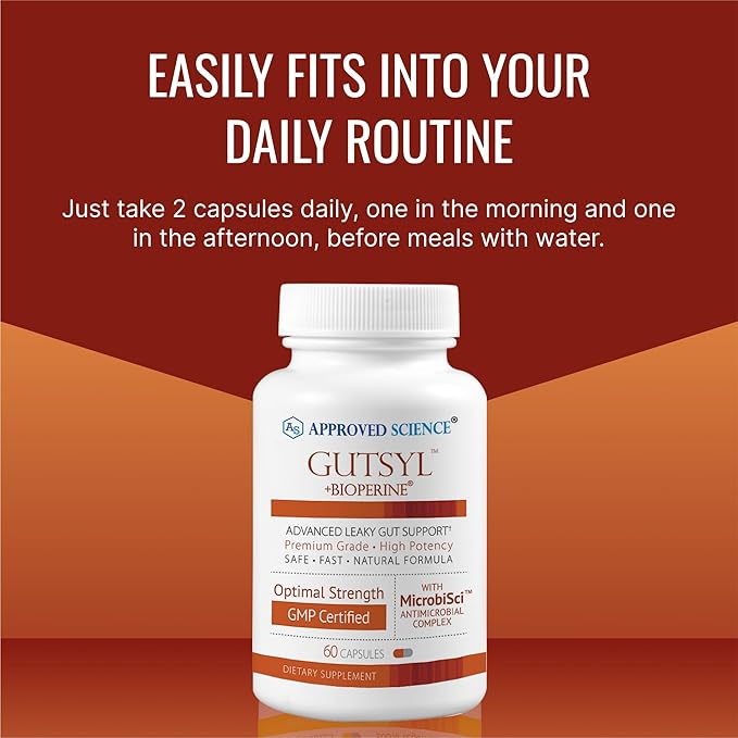 Approved Science® Gutsyl - Leaky Gut Supplement - Protect GI Tract with Aloe Vera, Marshmallow Root, Licorice, and Slippery Elm - Contains Prebiotic and BioPerine - 60 Capsules