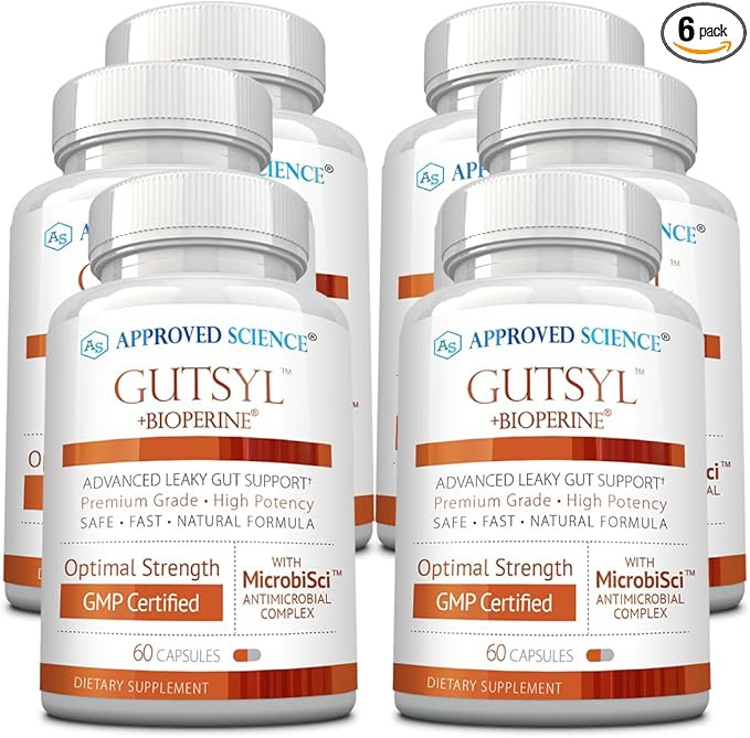 Approved Science® Gutsyl- Leaky Gut Supplement- Protect GI Tract with Aloe Vera, Marshmallow Root, Licorice, and Slippery Elm- Contains Prebiotic and BioPerine- 6 Month Supply