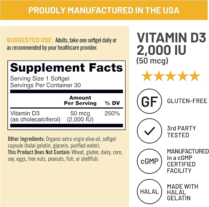 - NATURALLY-SOURCED, NON-GMO: These Vitamin D3 immune support and bone health supplements* are formulated with a naturally-sourced vitamin D3 ingredient, and are gluten-free and non-GMO. Packaging may vary due to high demand, same great product and ingredients.