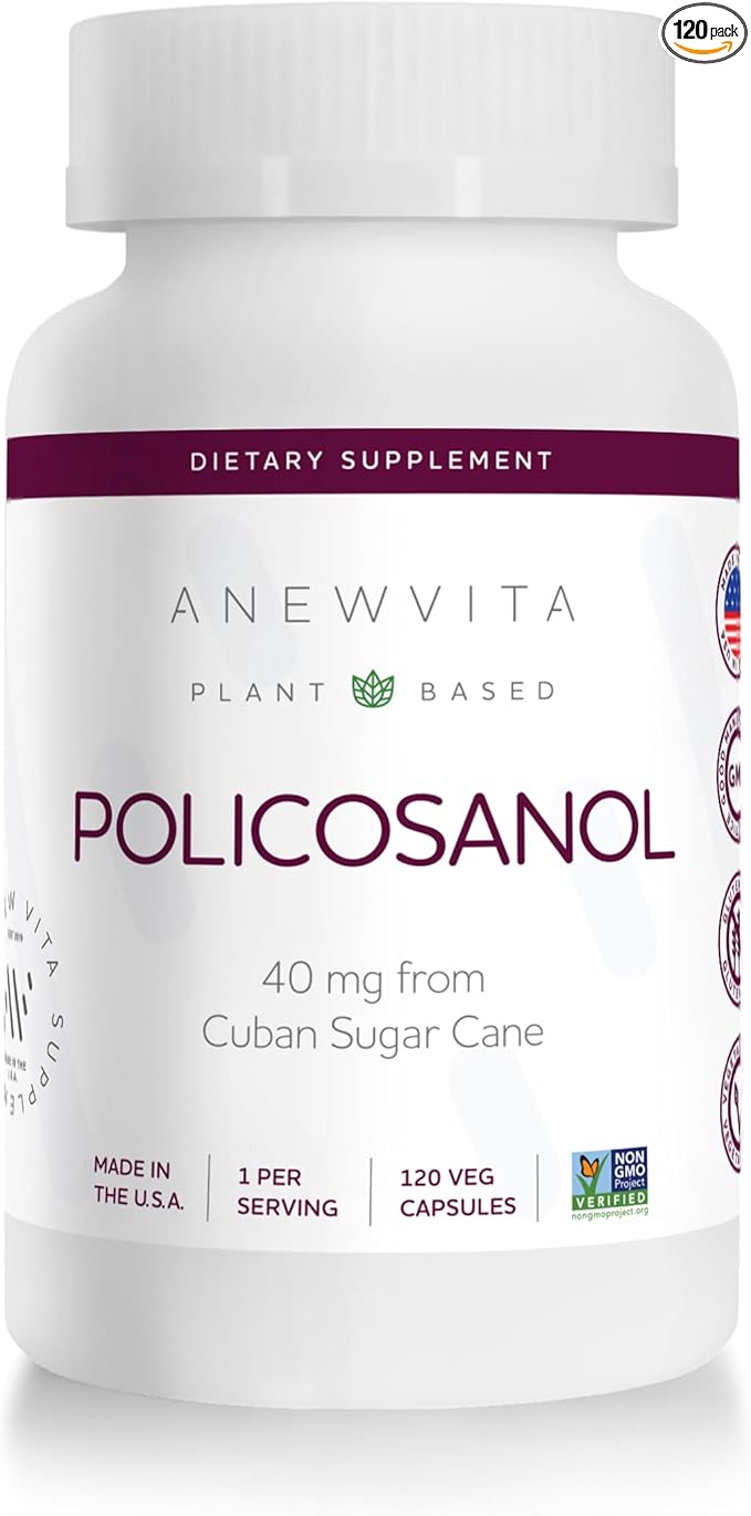 - POLICOSANOL POTENCY: Anew Vita's supplement, derived from Cuban sugarcane, is recognized for its aliphatic compounds. It promotes overall well-being and helps maintain healthy lipid levels. Each package contains 120 Non-GMO vegetable capsules. Recommended dose: 1 daily, providing 40mg Policosanol.*