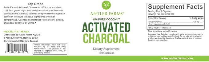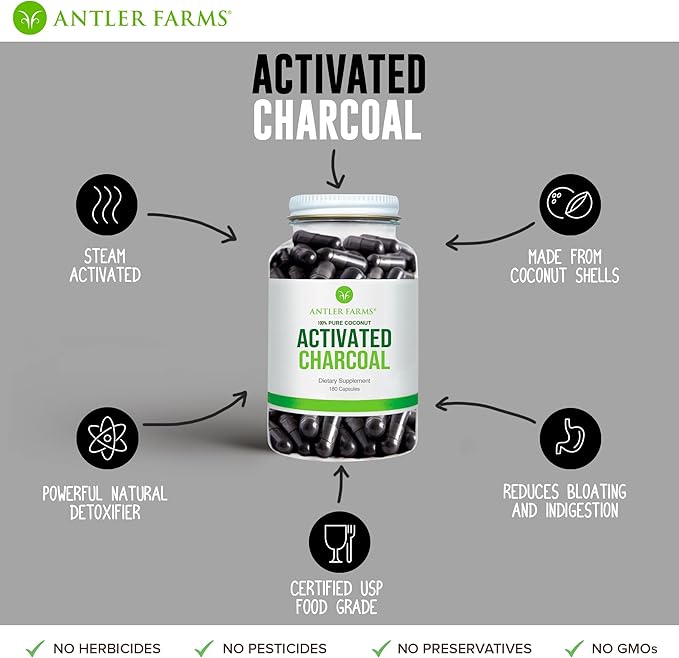 - POWERFUL DETOXIFIER - Antler Farms Activated Charcoal is a superior broad-spectrum binder. The high adsorption properties acts as a safe but powerful way to eliminate unwanted substances out of the body.