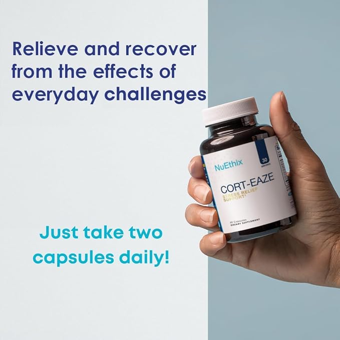NuEthix Formulations Cort-Eaze - Cortisol Supplement - Health Support Supplement with Ashwagandha, L-Theanine & Rhodiola Rosea - Relaxation and Deep Sleep, 60 Capsules, 30 Servings