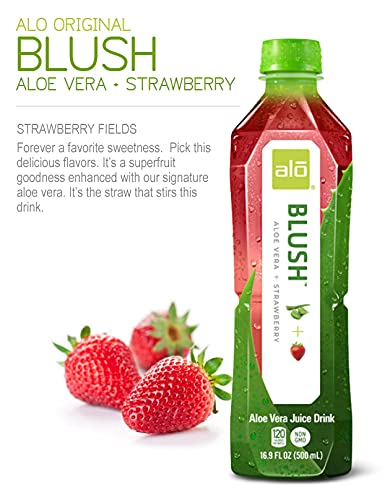 - ALO BLUSH WITH REAL STRAWBERRY: Strawberry superfruit goodness enhanced with our signature aloe vera juice and pulp harvested straight from the leaf; Gluten ; Vegan natural aloe drink