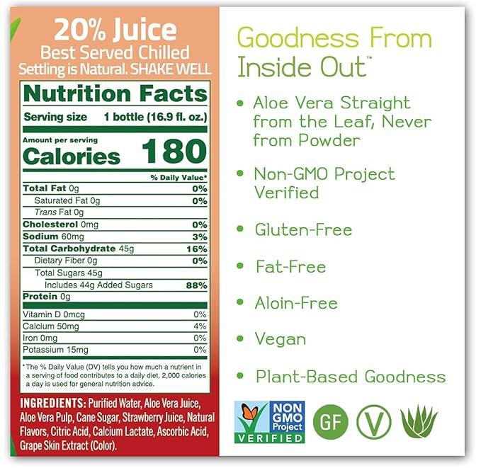 - FARM-TO-BOTTLE DELICIOUSNESS: Great flavor comes from using real fruit and vegetable juices as well as organic and other fine ingredients combined with real, fresh aloe juice and pulp; No aritficial anything