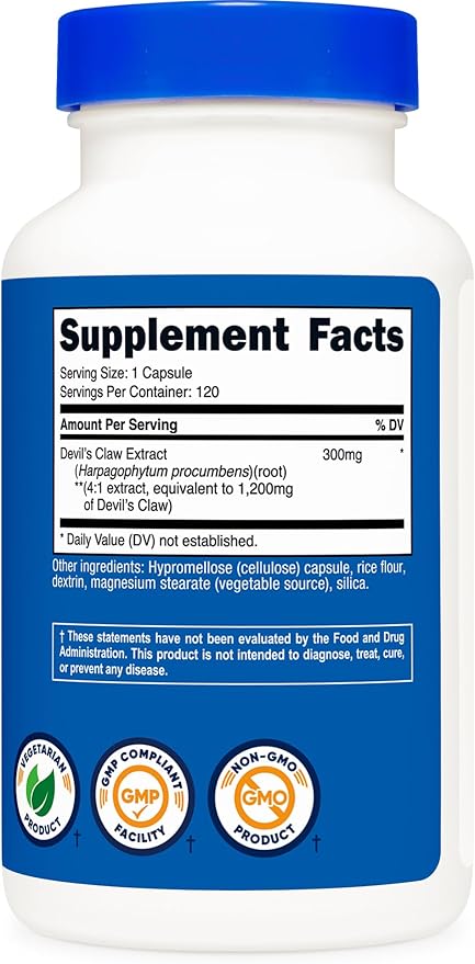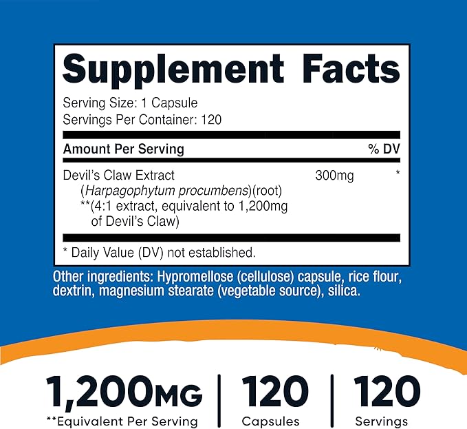 Nutricost Devils Claw 1200mg Equivalent, 120 Capsules - Veggie Caps, Non-GMO, Gluten Free, and Vegetarian Friendly