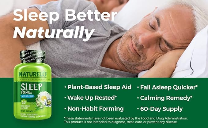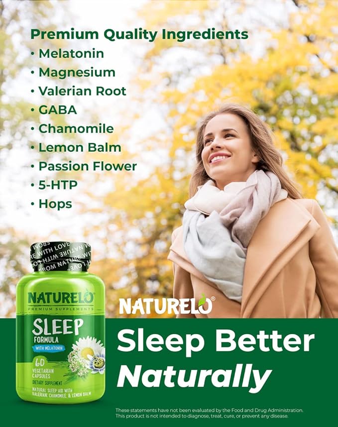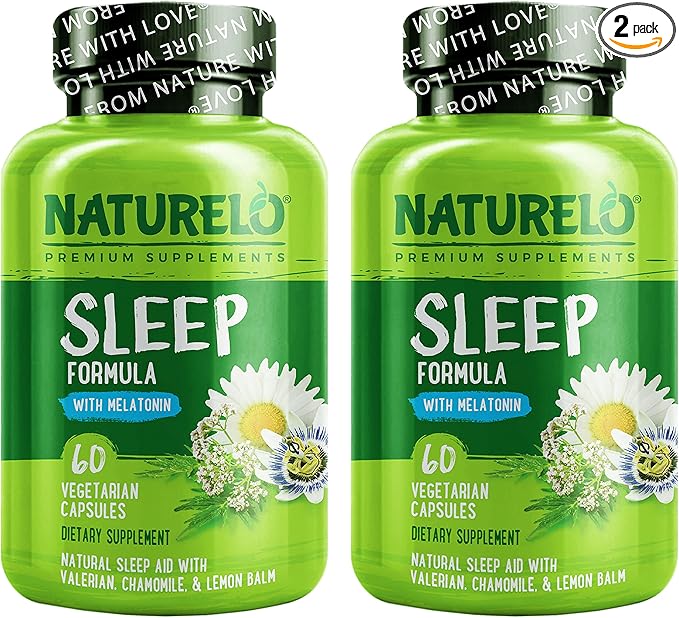 NATURELO Sleep Aid - with Melatonin, Magnesium, GABA, Valerian Root, Lemon Balm, Chamomile Herbal Extracts - Plant-Based Sleeping Aid - 60 Vegan Capsules (Pack of 2)