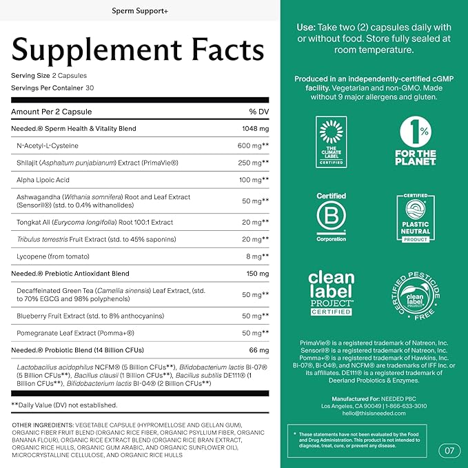 Needed. Sperm Support - Fertility Supplements for Men - Clinically Studied Botanical Ingredients for A Whole Body Approach to Male Fertility - Prenatal Vitamins - 60 Capsules, 30 Day Supply