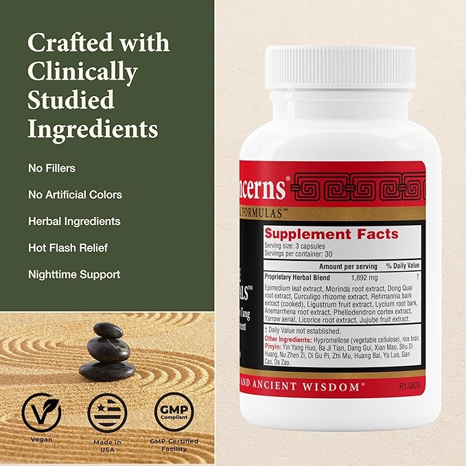 - Clinically Tested Ingredients - Crafted with clinically tested ingredients such as Dong Quai, Curculigo, Ligustrum, Anemarrhena, Phellodendron, Yarrow aerial, Licorice root, Jujube fruit, Epimedium, Morinda, Rehmannia & Lycium that work together to help support your body's ability to manage unpleasant symptoms.