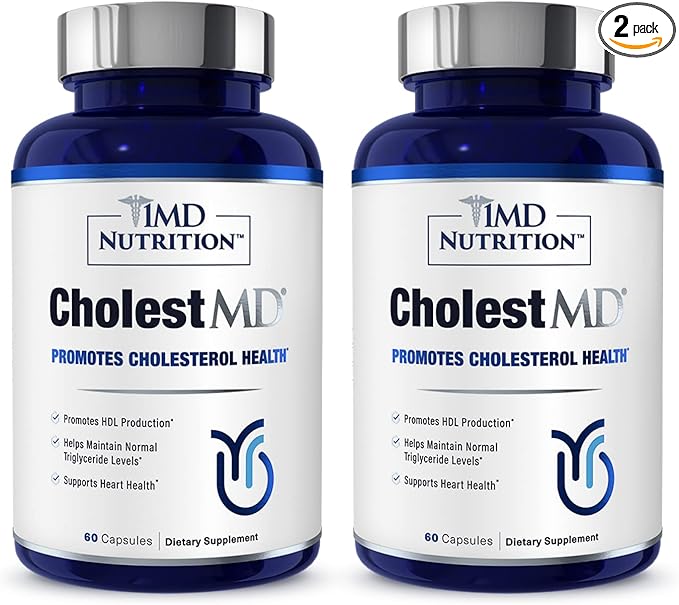 1MD Nutrition CholestMD with Olive Leaf Extract, Bergavit, Niacin, Garlic | 120 Capsules (2-Pack)