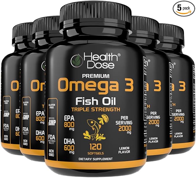 - Health Dose Supply -- 120 Softgels | 2 months supply, 1 more month than most brands | For Women & Men | 800mg EPA | 600mg DHA | In total 2,000mg Fish Oil per serving | Gluten Free, Non-GMO, Lemon Flavor.