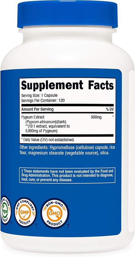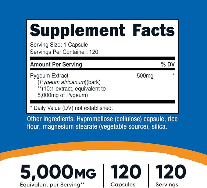 Nutricost Pygeum Extract 5000mg Equivalent, 120 Capsules (from 500mg of 10:1 Extract) - Veggie Capsules, Non-GMO, Gluten Free, Vegetarian Friendly