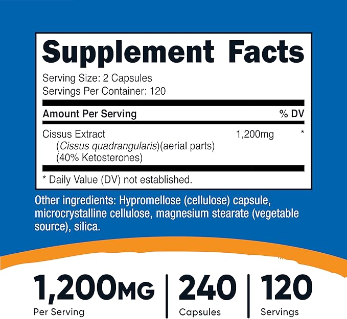- 1200mg of Cissus Quadrangularis Per Serving (600mg Per Capsule)