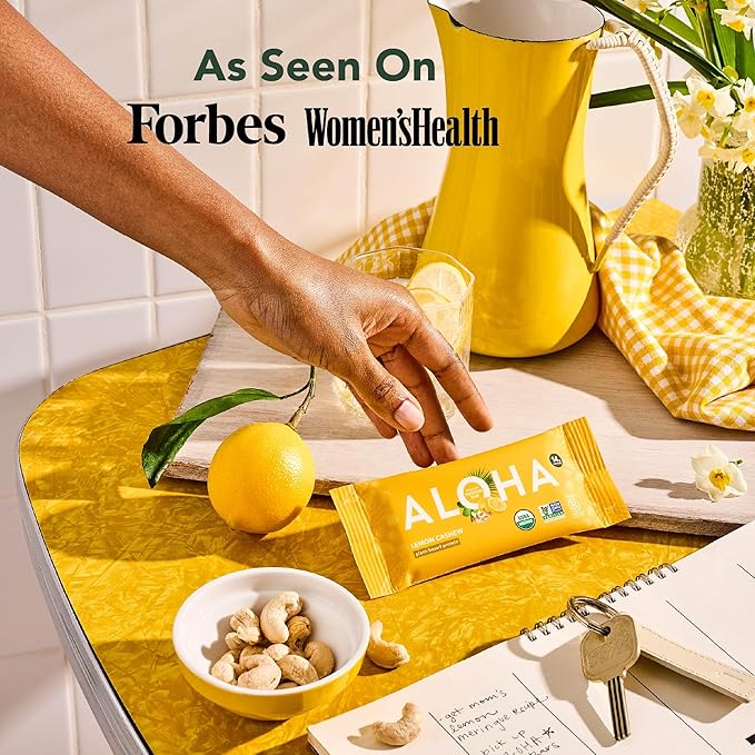ALOHA Organic Plant Based Protein Bars - Lemon Cashew - 12-Count - Vegan, Low Sugar, Gluten-Free, Paleo, Low Carb, Non-GMO, No Stevia & No Erythritol