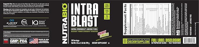 - Get Better Results, Faster: Whether bulking or cutting, NutraBio Intra Blast’s comprehensive amino formula with 20g Amino acids designed to enhance lean muscle growth, improve recovery, and maximize results from every workout.