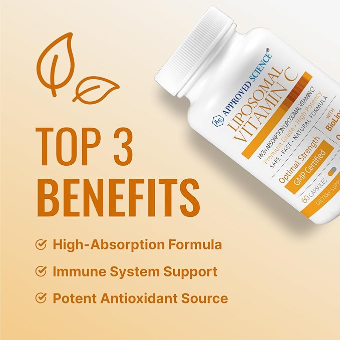 Approved Science Liposomal Vitamin C - 1100 mg - 180 Capsules - Immune Support, Boost Collagen, Antioxidant - High Absorption - Fat Soluble - Non GMO - Vegan - Made in The USA