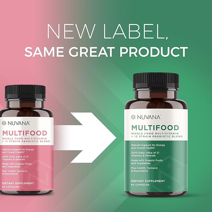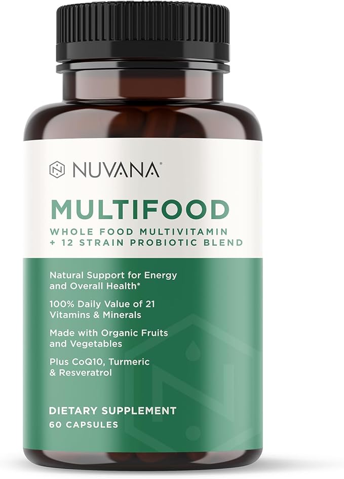 - ALL-IN-ONE MULTIVITAMIN: Get everything you need with Nuvana Multifood, an all-natural multivitamin that delivers 21 key vitamins and minerals plus a proprietary blend of 21 organic fruits and vegetables. Our scientifically designed all-in-one multivitamin boosts energy, enhances immunity, and supports healthy skin, bones, and digestive system.