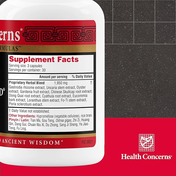 Health Concerns Gastrodia Relieve Wind – Headache, Dizziness & Liver Support – Chinese Herbal Formula with Gastrodia, Uncaria, Skullcap, & Dong Quai – Blood Circulation Supplement – 90 Capsules