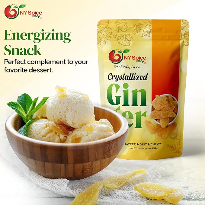 - š² GINGER ROOT CANDY SLICES FOR DESSERTS - Use crystalized ginger slices as a topping or mix-in for desserts like ice cream, yogurt, pudding, or fruit salads.Crystal ginger candy provide a chewy texture and a burst of ginger flavor.