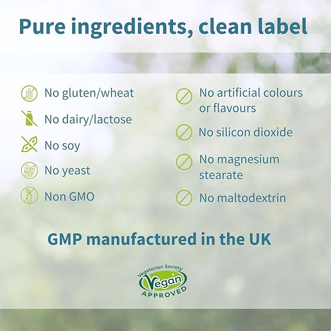 - GMP MANUFACTURED IN THE UK- formulated by nutrition scientists in Cambridge. Subtle & natural orange flavor; vegan; MTHFR-friendly. No sugars, aspartame, artificial colors or flavors