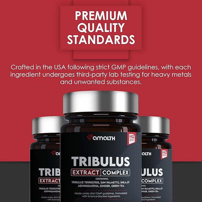 Amalth Tribulus Terrsestris, 20:1 Extract Per Serving, Highest Potency with Ashwagandha, Saw Palmetto, Shilajit 120 Capsules